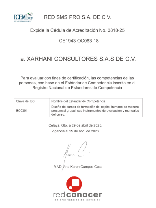 Xarháni Consultores es una empresa michoacana de consultoría, certificación de competencias laborales y formación de capital humano, especializada en la transformación organizacional a través de soluciones en mejora continua, gestión de procesos, eficiencia operativa, calidad y desarrollo de liderazgo.